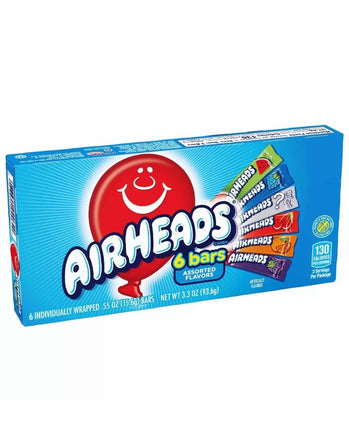 The Airheads 6 Bars Theatre Box is the perfect treat. Each box contains 6 fruit flavour chewy candy bars in assorted flavours such as watermelon, grape, cherry, orange, blueberry and the mystery flavour bar.