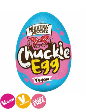 Mummy Meegz Chuckie Egg, made with oat milk this delicious chocolate egg is vegan, slavery free and sustainably sourced.