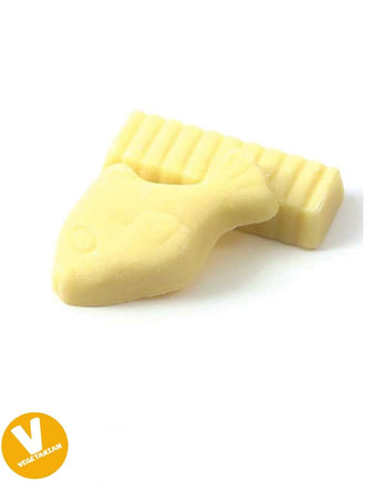 White chocolate flavoured candy shapes.