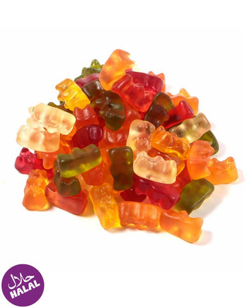 Assorted random mix of bright Colours and Fruity flavour Jelly Gummy Sweets in the novelty shape of mini Teddy Bears.