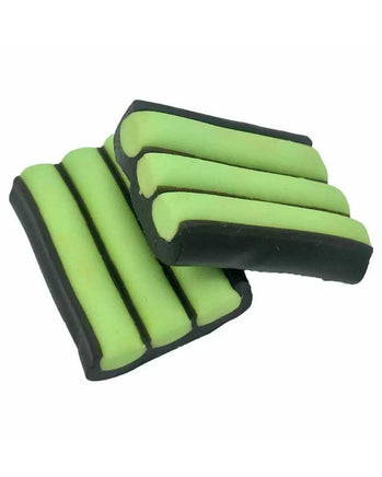The Apple Stripe Liquorice adds a fruity kick to a traditional liquorice treat! Delicious green stripes of fondant wrapped in traditional chewy liquorice.