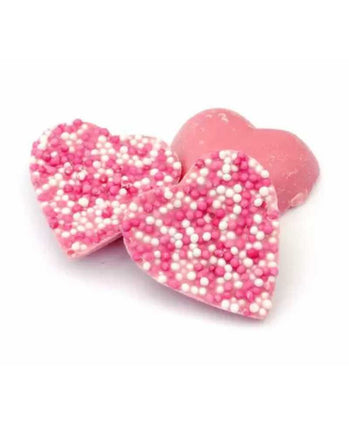 Kingsway Pink Hearts Strawberry flavour candy pieces topped with pink and white hundreds and thousands.