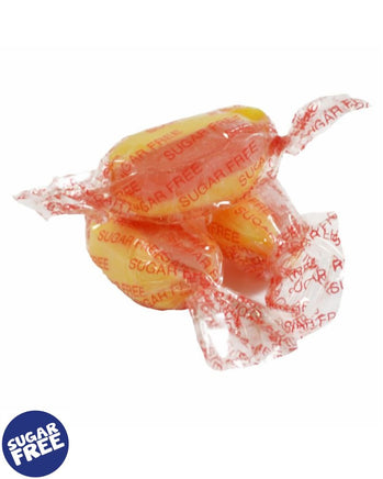Individually wrapped sugar free creamy custard and sharp rhubarb flavour hard boiled sweet. Made with sweeteners.