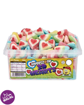 Sweetzone 3D Fruit flavoured Foam Hearts are tasty, sugar coated 3D hearts in a range of fun, bright colours.